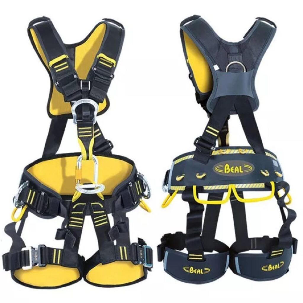 - اجزای هارنس: کمربند، سگک، حلقه پا، حلقه ابزار، حلقه بالاکشی، حلقه حمایت، نقاط اتصال، نوار کشی