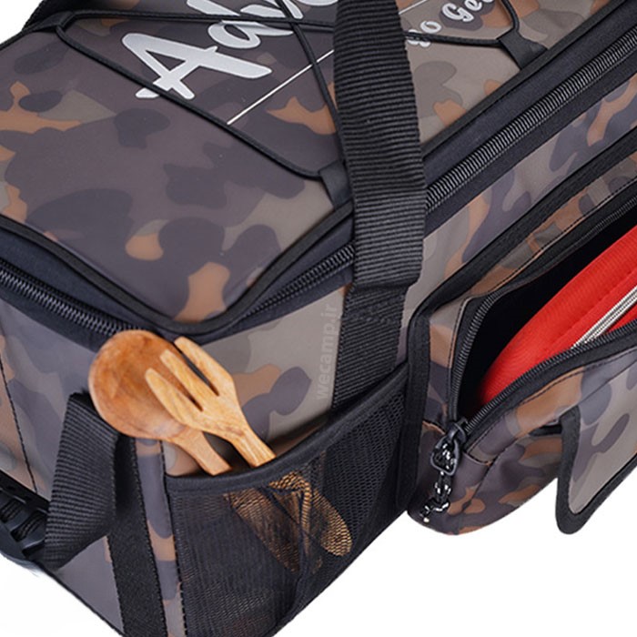 دیوارههای این ساک با فوم ضخیم تقویت شدهاند تا ضربههای ناگهانی را جذب کرده و از تجهیزات داخل در برابر فشار محافظت کنند. بندهای حمل جانبی، تسمههای مقاوم و دستگیرههای چندگانه امکان حمل راحت ساک را فراهم میکند؛ هم به صورت دستی و هم احتمالاً به صورت دو نفره برای بار سنگین. در قسمت بدنهی ساک جیبهای توری تعبیه شدهاند تا لوازمی که نیاز به دسترسی سریع دارند در آنها قرار بگیرد. همچنین قسمت بالایی ساک ممکن است دارای بند یا تسمههایی باشد که بتوانی تجهیزات سبک مثل زیرانداز یا پتوی مسافرتی را روی آن ببندی.
