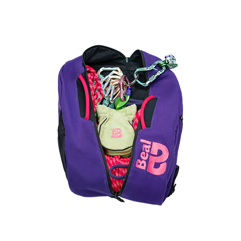 با بازشو جلویی (Front opening) دسترسی سریع و راحت به محتویات داخل فراهم میشود و تکه پوششی (Tarp) داخلی به ابعاد 145 × 90 سانتی متر، طناب را از آلودگی محافظت کرده و امکان گره زدن انتهای آن را نیز میسر میسازد.