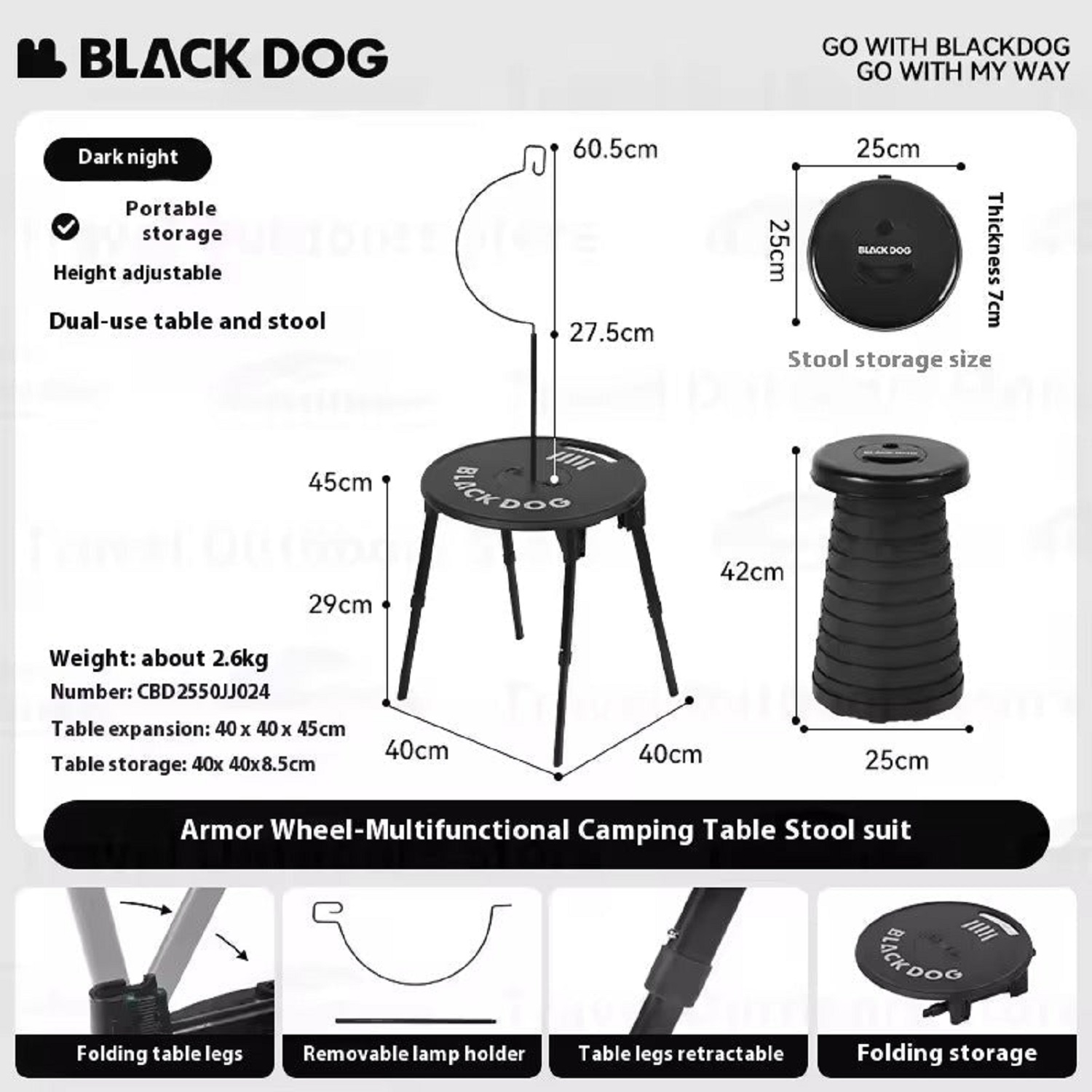 - سبک و قابل حمل: وزن کم (میز 1.55 کیلوگرم و صندلی 1.05 کیلوگرم).