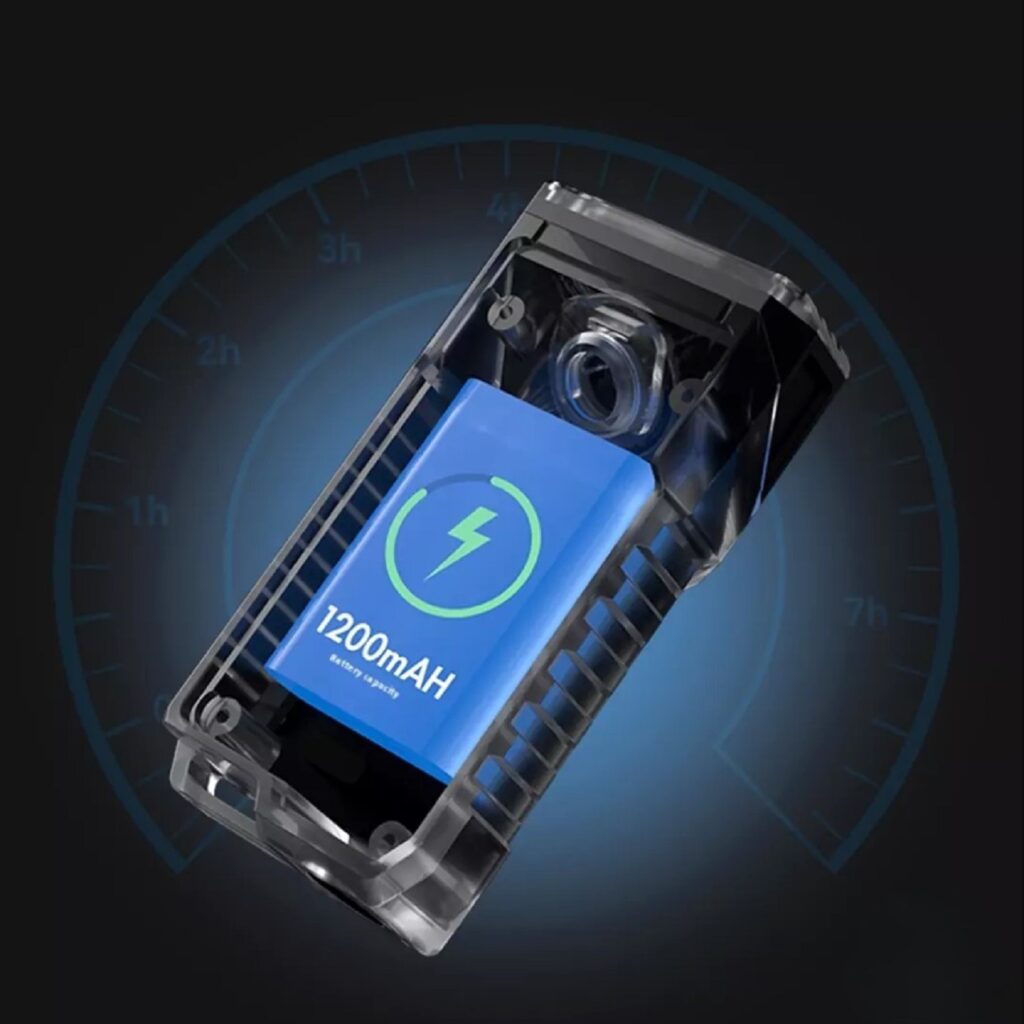 یکی از مزایای کلیدی این چراغ، وجود باتری لیتیوم یونی داخلی با ظرفیت ۱۲۰۰ میلیآمپر ساعت است که امکان شارژ مجدد را فراهم کرده و شما را از خرید باتریهای یکبار مصرف بینیاز میکند. شارژدهی مناسب این باتری باعث میشود در طول سفرهای چند ساعته یا حتی استفاده روزمره، همیشه یک منبع نور مطمئن در اختیار داشته باشید.