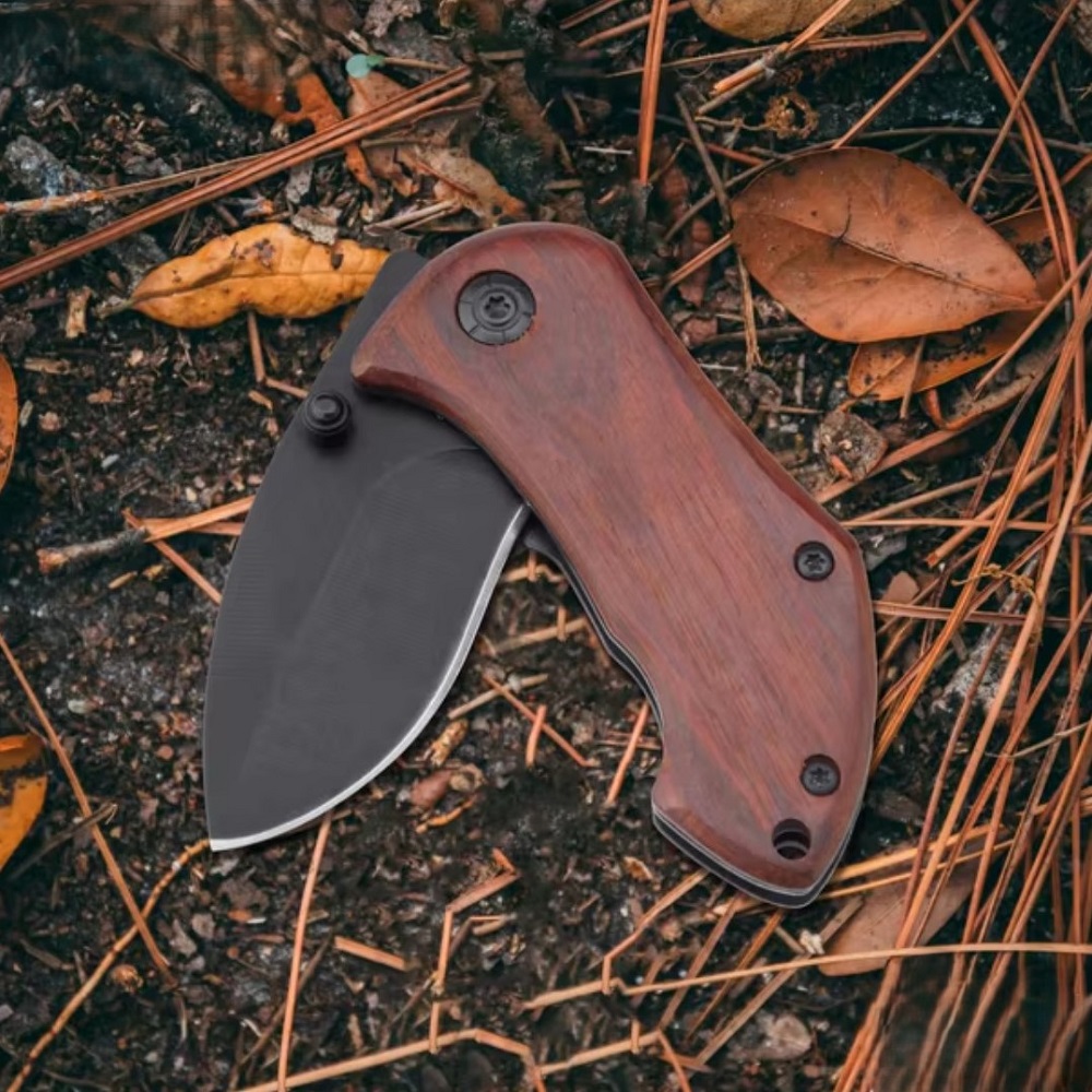 دسته چوبی به کار رفته در این چاقو، علاوه بر ایجاد ظاهری لوکس و طبیعی، احساس گرمی و لمس مطبوعی به کاربر میدهد. تیغهی فولاد ضدزنگ در این مدل، ترکیبی از مقاومت در برابر زنگزدگی و لبهی برّنده است که مناسب برای برش کارهای روزمره، کمپی یا مقدماتی است.