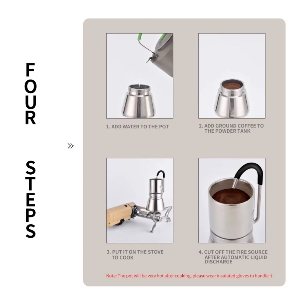 - مناسب برای تهیه اسپرسوی سبک، قهوه موکا و نوشیدنی داغ در طبیعت یا سفر.