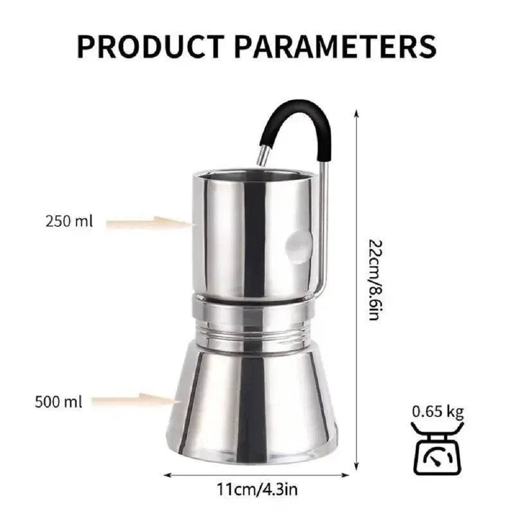 اگر عاشق قهوه خوب در طبیعت هستید، قهوه ساز بی آر اس مدل BRS-TC05 مخصوص شما طراحی شده است. این دستگاه بهصورت موکا پات (Moka Pot) از جنس فولاد ضدزنگ ساخته شده، وزن تقریباً ۶۵۰ گرم و ظرفیت حدود ۲۵۰ میلیلیتر یا حتی ۵۰۰ میلیلیتر دارد.