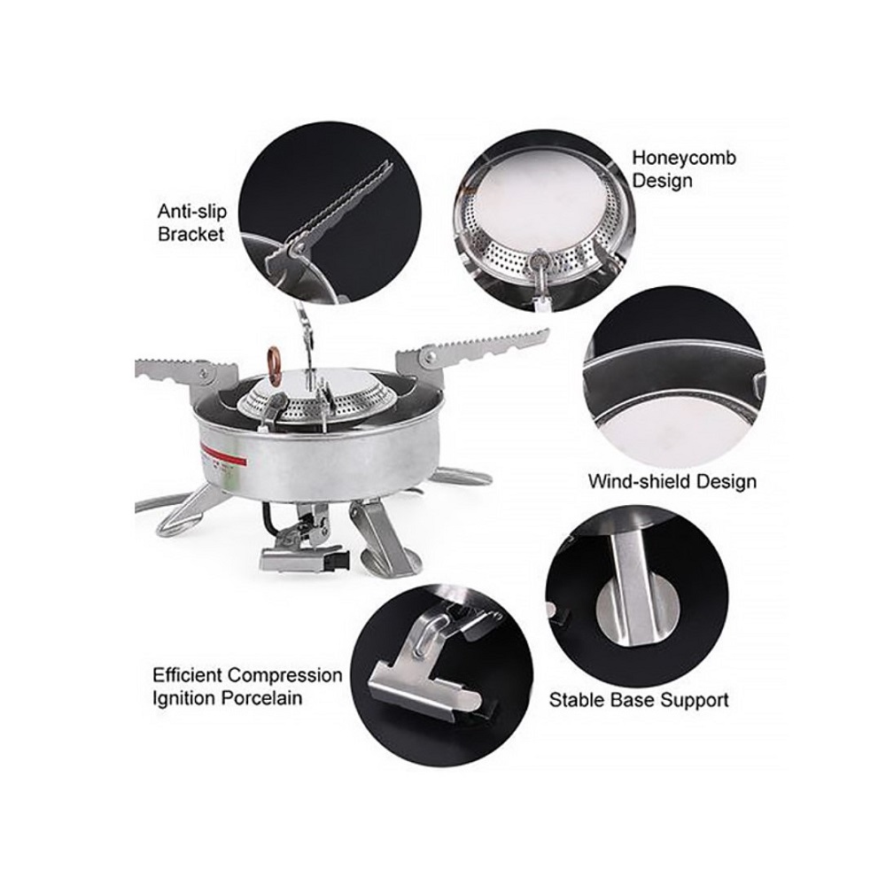 توان حرارتی این اجاق حدود 2.27 کیلووات بوده و با مصرف تقریبی 163 گرم گاز در ساعت، امکان پخت سریع غذا و جوش آوردن آب را در مدت کوتاه فراهم میکند. سیستم جرقهزنی سرامیکی (Piezo) تعبیهشده روی بدنه، روشنکردن شعله را بدون نیاز به فندک یا کبریت ممکن میسازد؛ ویژگیای که در شرایط باد و باران اهمیت زیادی دارد.