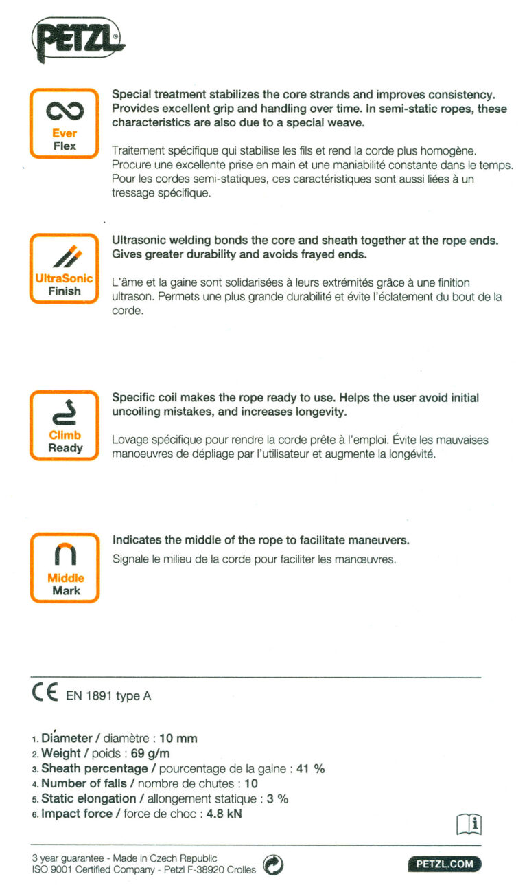 ابعاد و بستهبندی: عرضه در طولهای 50، 100 (بهصورت کویلشده باClimbReady، نشانگر وسط و پایان اولتراسونیک) و 200 متر بهصورت عمده.