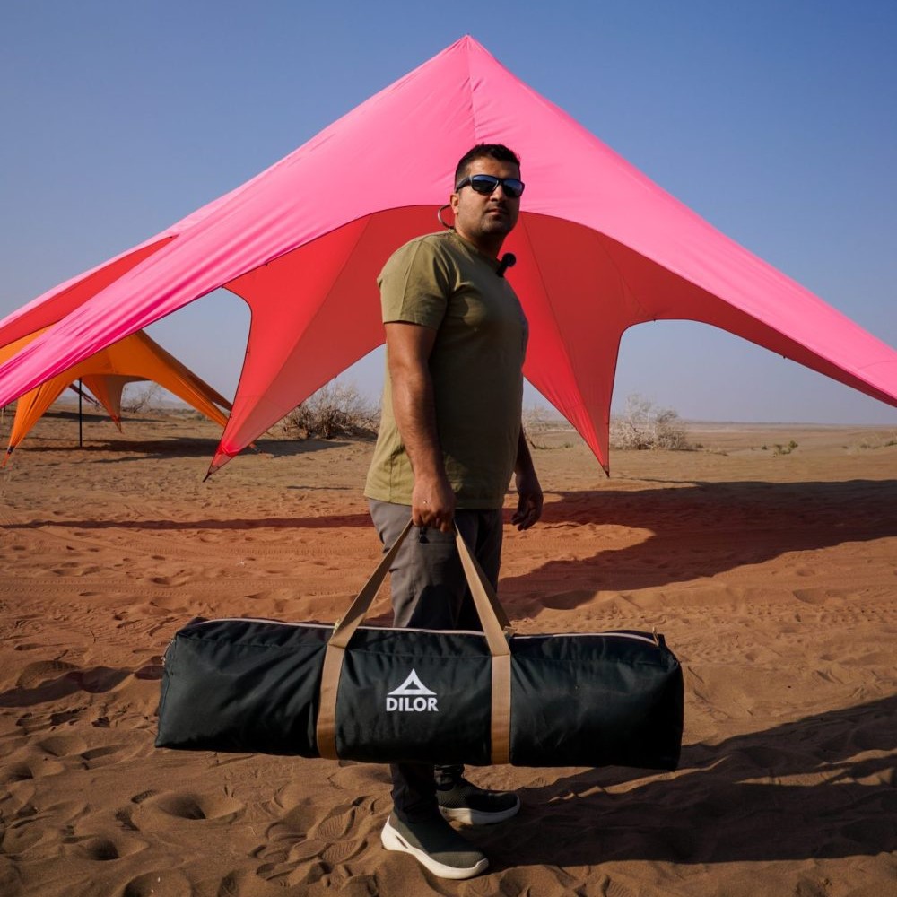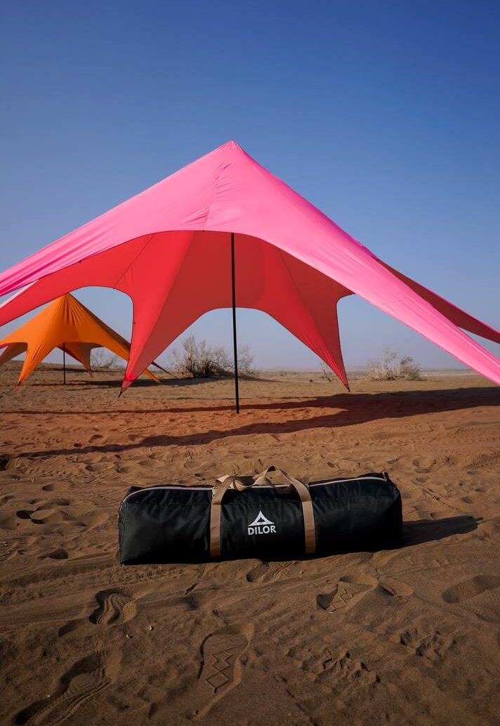 استارتنت دیلور (سایبان ستاره ای) قطر ۱۴ متر یک سایبان حرفهای و چشمگیر است که فضای گسترده و امنی برای گردهماییهای گروهی، بازارچههای کوچک، پیکنیکهای سازمانی و رویدادهای فضای باز فراهم میکند. طراحی ستارهای این سازه بهصورت هوشمندانه شعاع پوشش را به حداکثر میرساند و با ارتفاع مرکزی ۴.۵ متر حس وسعت و راحتی را زیر سقف ایجاد میکند؛ در عین حال دهانههای کناری با ارتفاع ۲ متر اجازهٔ تردد آسان و جابجایی تجهیزات را میدهند.