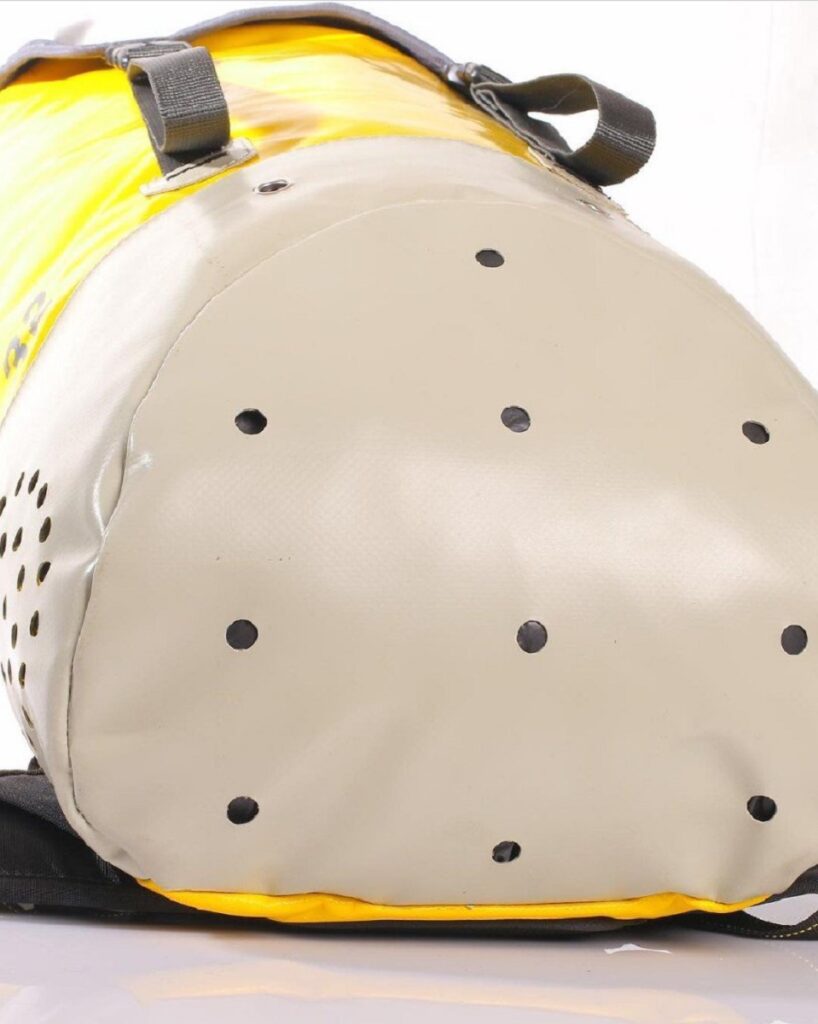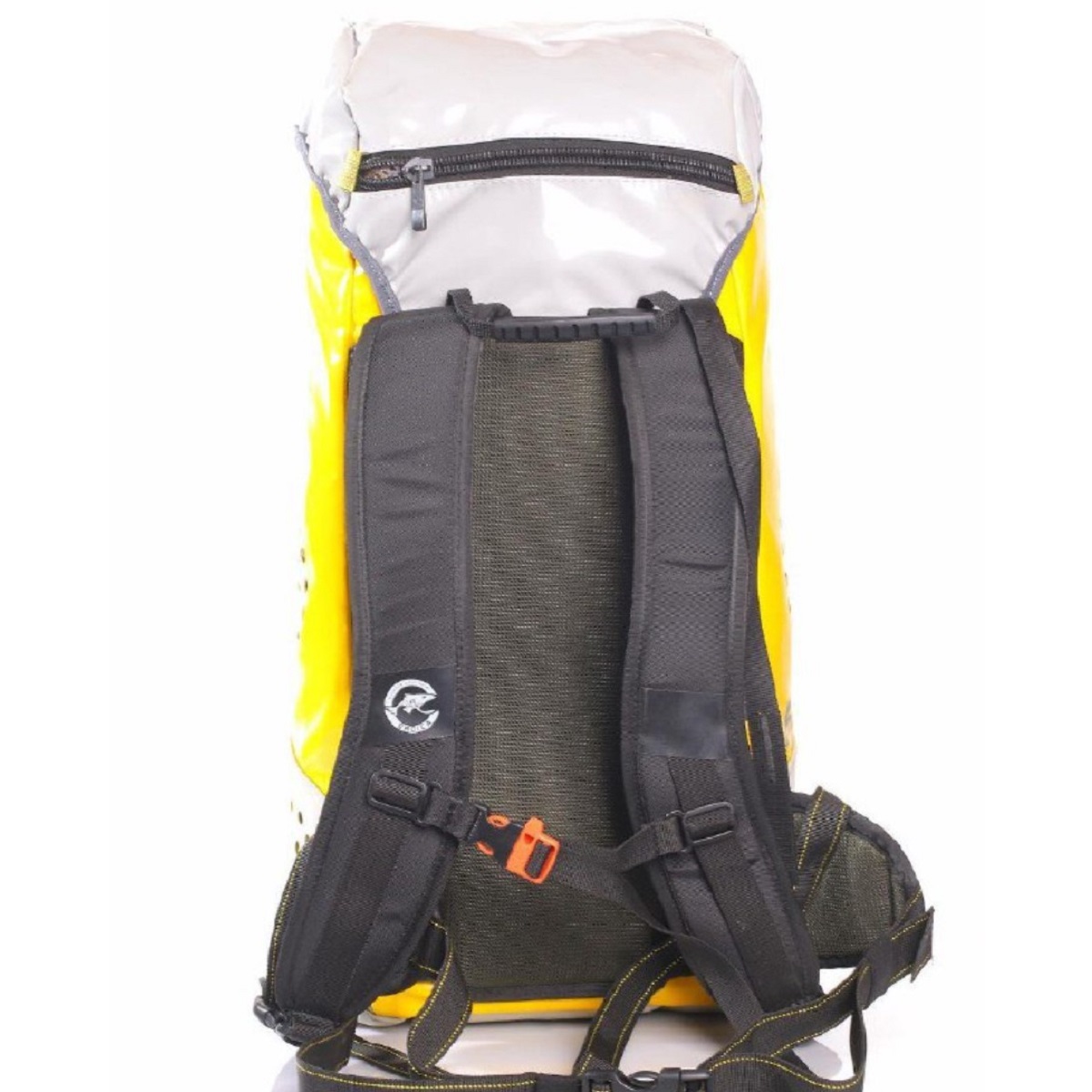 یکی از نکات مهم، سیستم تخلیه آب است؛ این کوله دارای منافذ در پایین و کنارهها است که در صورت ورود آب، امکان خروج آن را فراهم میکند، امری حیاتی در درهنوردی که اغلب با جریان آب همراه است.