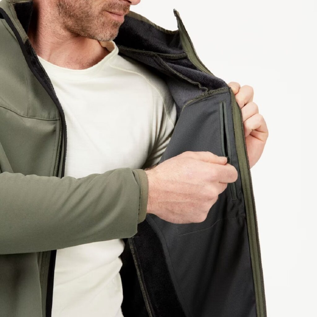 جنس بیرونی کاپشن سافتشل فورکلاز از پلیاستر مقاوم با خاصیت باد گیر و آب گریز (Water Repellent) تولید شده تا در هوای نامساعد، رطوبت را دفع کند و بدن شما خشک بماند. در داخل کاپشن، از آستر پولار (فِلیس) نرم و گرم استفاده شده که دمای بدن را حفظ کرده و در عین حال سبک و تنفس پذیر باقی می ماند؛ بنابراین در فعالیت های طولانی مانند کوهپیمایی یا پیادهروی، احساس راحتی و آزادی خواهید داشت.