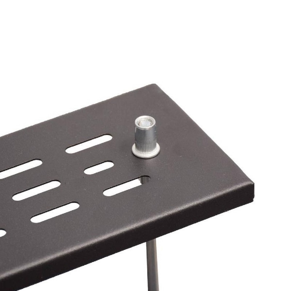 این میز با ابعاد 58 × 37 × 50 سانتیمتر، سطح مناسبی برای قرار دادن وسایل فراهم میکند و قادر به تحمل وزن تا ۱۵ کیلوگرم است. رویه و پایههای میز از جنس فولاد هستند و رویه با روکش رنگ استاتیک پوشانده شده که مقاومت آن را در برابر عوامل محیطی افزایش میدهد.