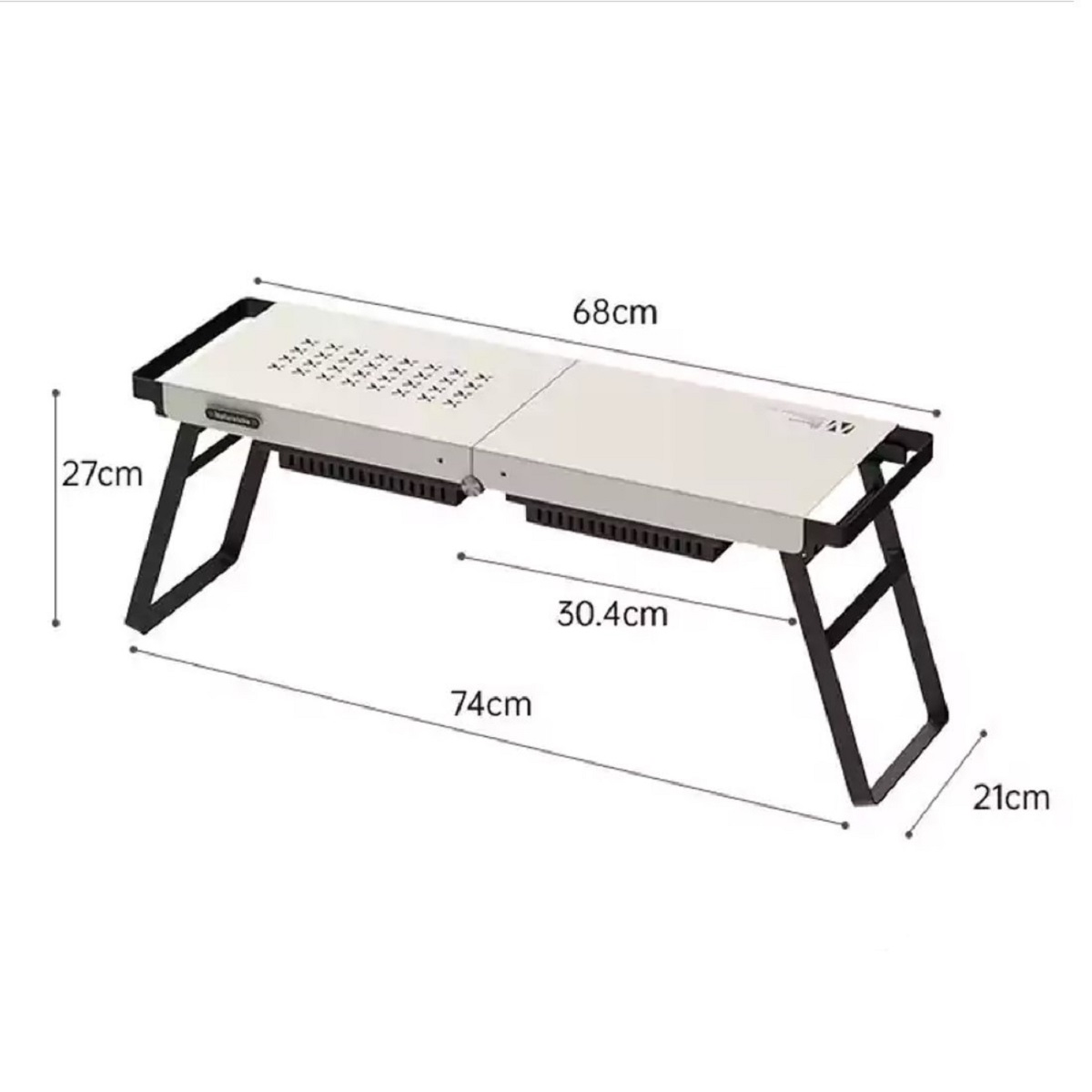 جنس اصلی میز از ورق نورد سرد ساخته شده که مقاومت بالایی در برابر حرارت زغال و دوام طولانیمدت دارد. وزن تقریبی 5.2 کیلوگرم و ابعاد باز شده بزرگ 27 × 21 ×110 سانتیمتر، سطح پخت وسیعی را در اختیار کاربر قرار میدهد. پایههای این میز باربیکیو مستحکم بوده و ثبات بالایی را هنگام آشپزی در طبیعت فراهم میکنند.