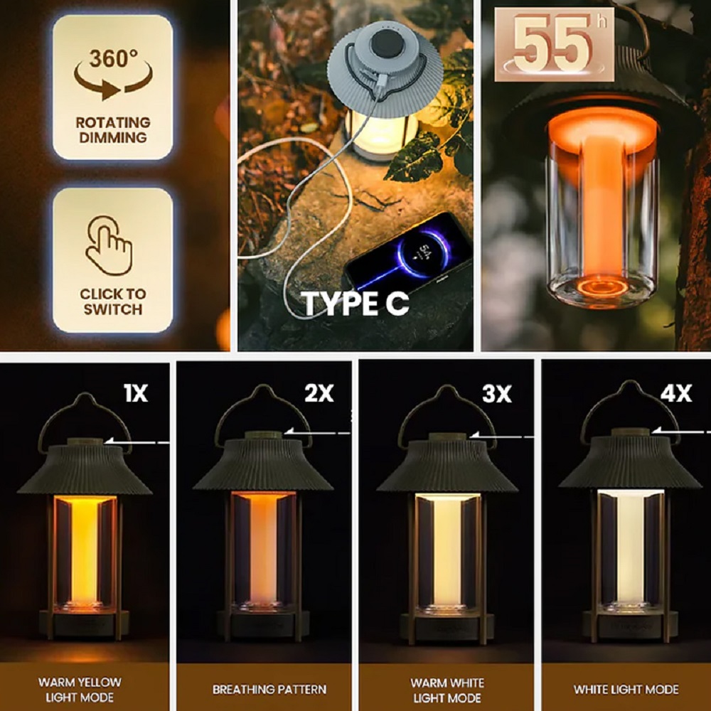 چراغ فانوسی کمپینگ Mountain Pavilion نیچرهایک مدل CNK2300DQ013 ، ترکیبی از زیبایی طراحی کلاسیک (رترو) و فناوری روشنایی مدرن است. این فانوس با شدت روشنایی قابل تنظیم بین 20 تا 200 لومن و ارائه چهار حالت نوردهی مختلف (زرد گرم، سفید گرم، سفید روشن و حالت Breathing) انعطافپذیری فوقالعادهای را برای ایجاد نور دلخواه در هر محیطی فراهم میکند. این مدل نه تنها یک منبع روشنایی، بلکه یک ابزار کاربردی و زیبا برای افزایش جذابیت فضای کمپینگ شماست.