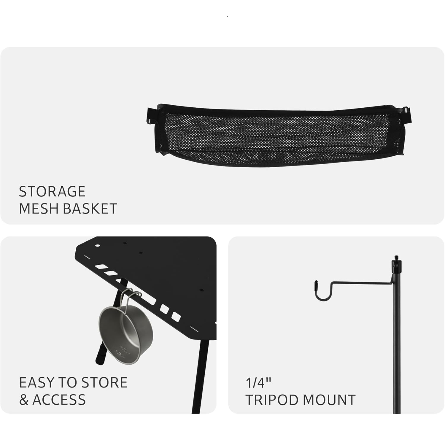 طراحی این میز طوری است که قابلیت آویزان کردن چراغ دارد، توری زیرین از پارچه پلیاستر مقاوم در برابر سایش ساخته شده و رنگبندیهایی مثل سبز و مشکی به انتخاب شما آمده است. در مجموع، CNK2450JJ025 میز کمپینگ تاشویی است که برای استفاده در فضای باز، سفر کوتاه یا کمپینگ خانوادگی بسیار مناسب است و ترکیبی از راحتی، دوام و قابلیت حمل آسان را ارائه میدهد.