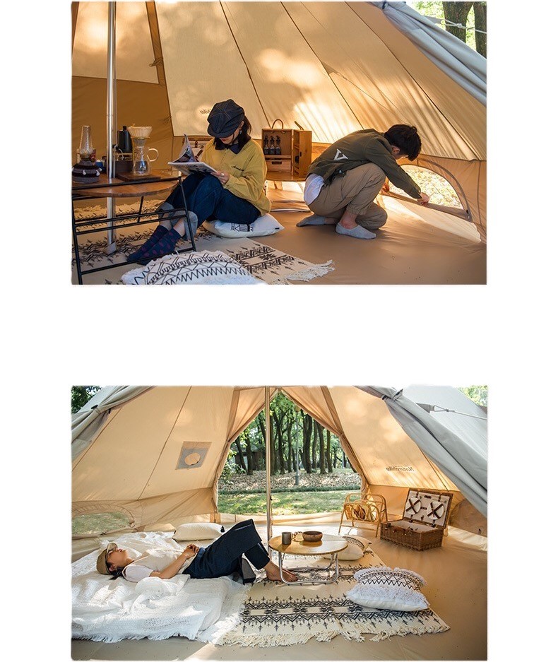 چادر هرمی Series 12.3 نیچرهایک مدل NH20ZP005 یکی از مدلهای پرطرفدار برای تجربه کمپینگ لوکس و اقامتهای گروهی در طبیعت است. این چادر با طراحی سقف مخروطی (شبیه به چادرهای مغولی)، فضای داخلی بسیار بزرگ و جادار با ارتفاع زیاد را فراهم میکند.