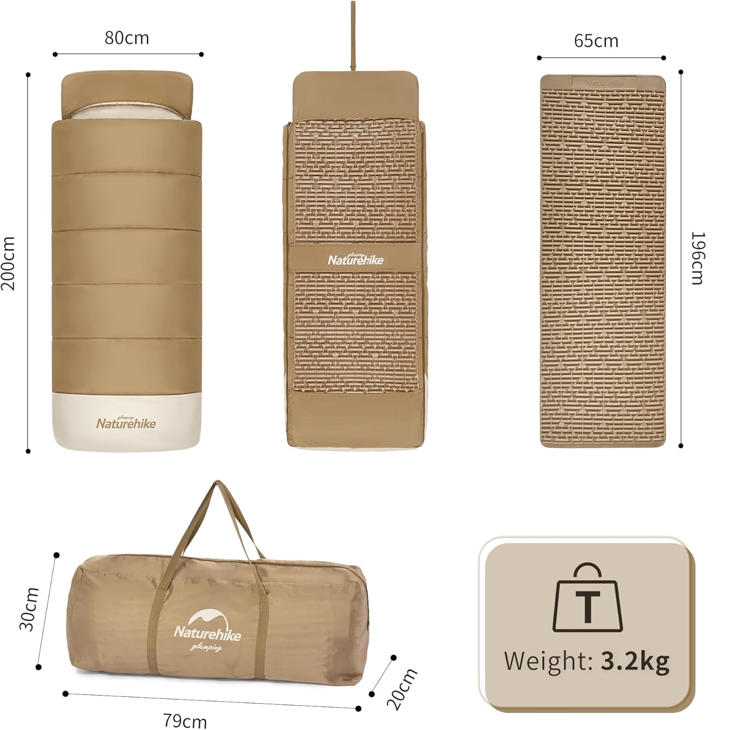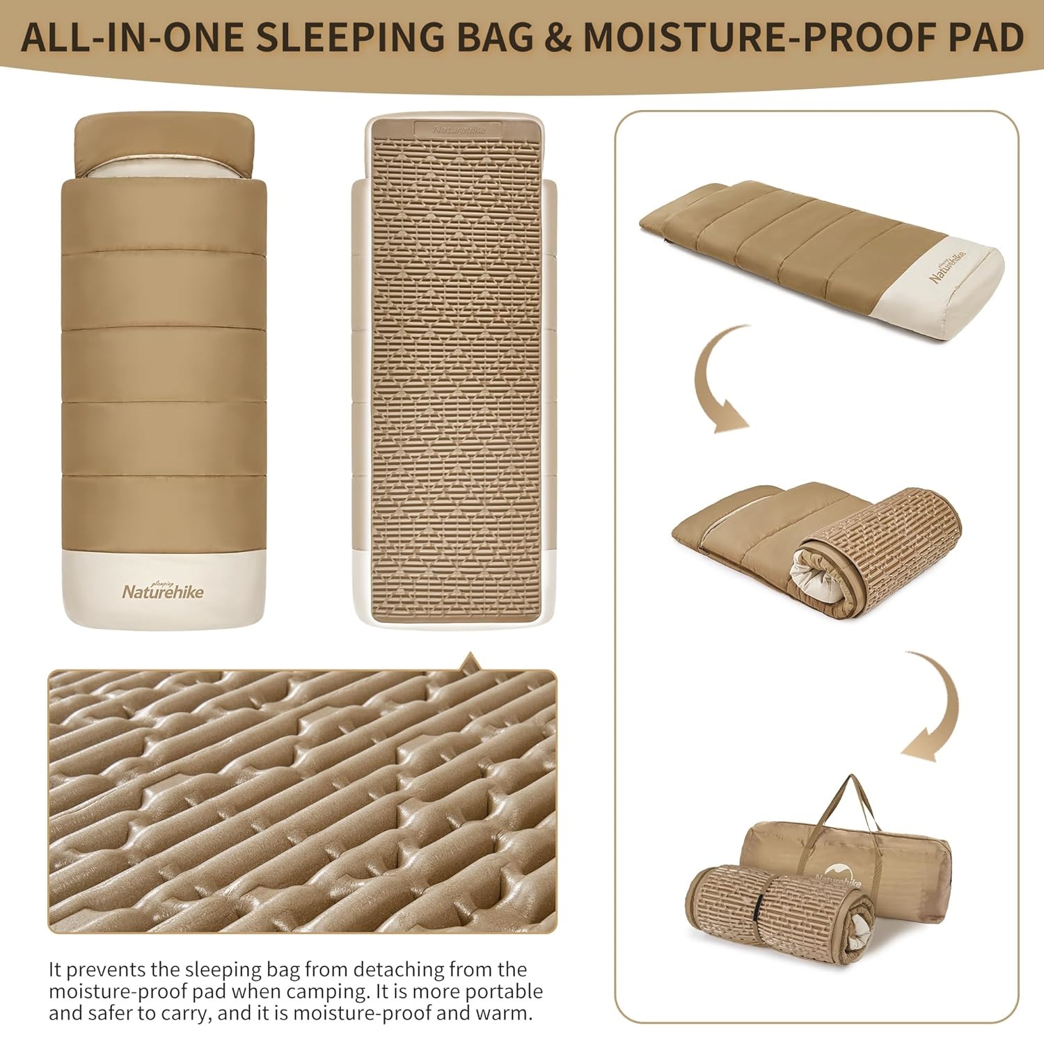 محصول Naturehike CNH22SD006 یک مجموعه ۲-در-۱ کاربردی است که کیسهخواب و تشک خواب را در قالبی جمعوجور ارائه میدهد. این طراحی بهگونهای است که در یک بسته، هم آسایش و حرارت کیسهخواب و هم نرمی و عایقبندی تشک وجود دارد.