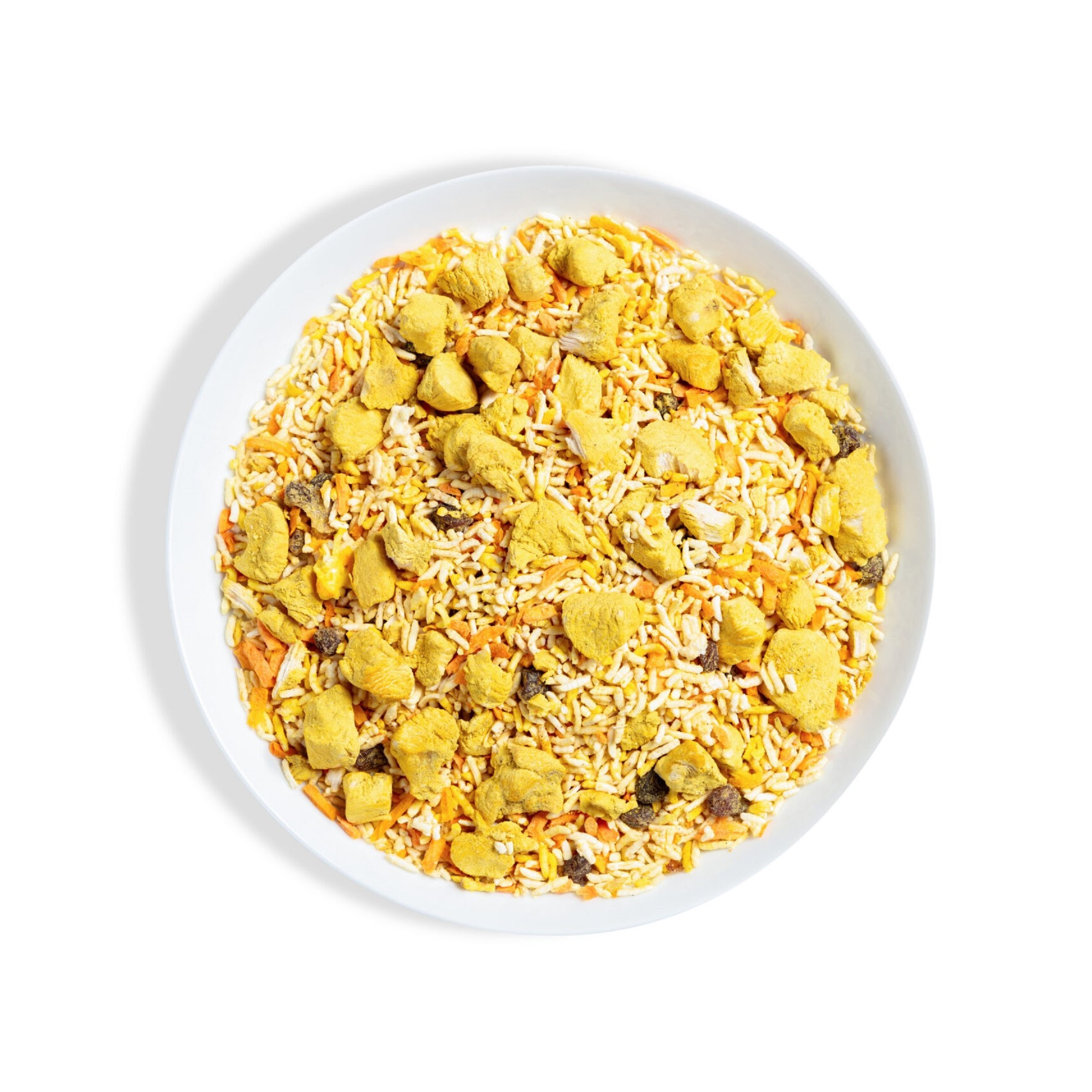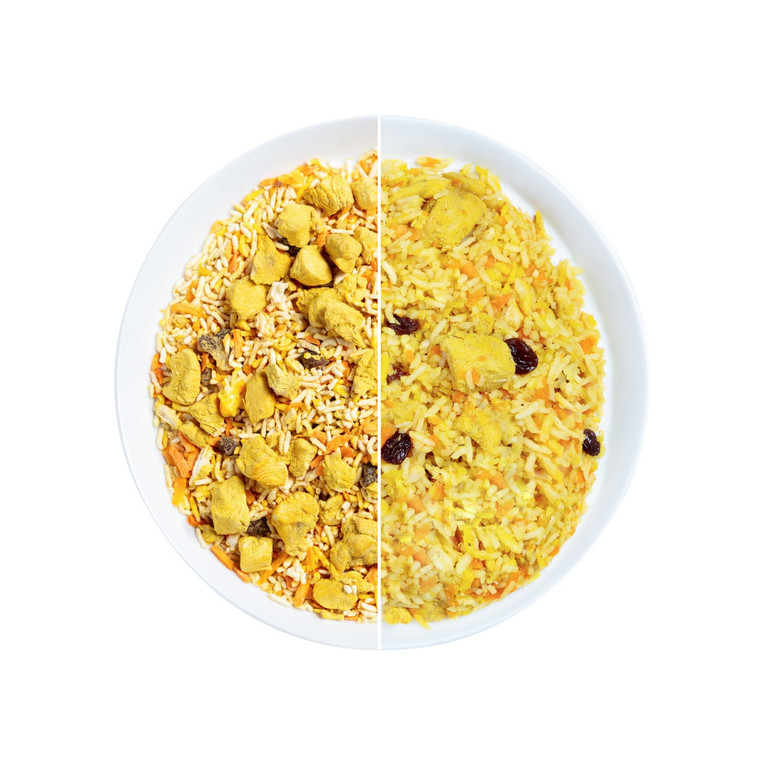 ترکیبات طبیعی: برنج ایرانی، مرغ، کشمش، هویج و ادویه مخصوص